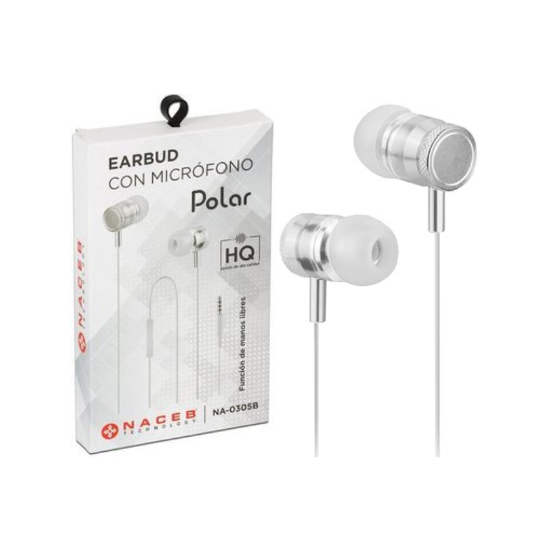AUDIFONOS CON MICROFONO NACEB POLAR 20MHZ 20KHZ 3.5MM BLANCO NA 0305B