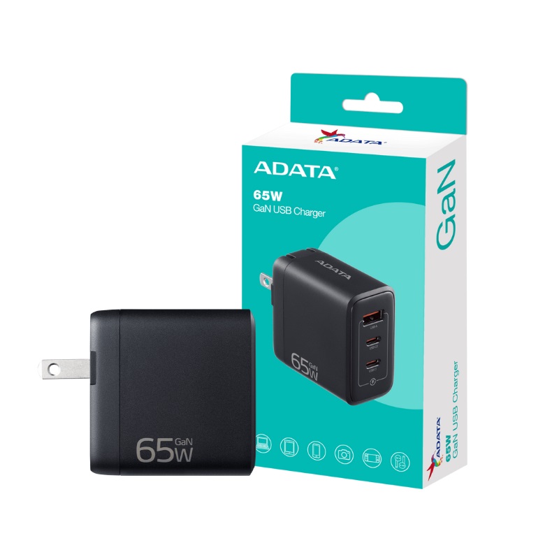 CARGADOR ADATA GAN USB 65W NEGRO CHARGERU 0653 QCPDBK