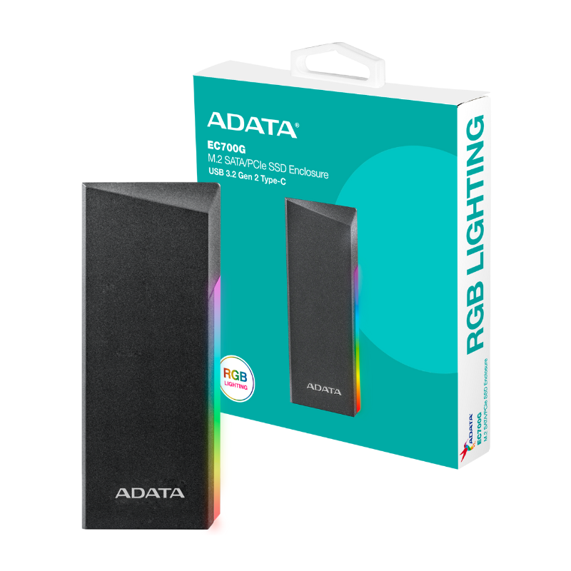 GABINETE ADATA RGB PARA SSD Y M.2 NEGRO USB C 3.1 AEC700GU32G2 CGY