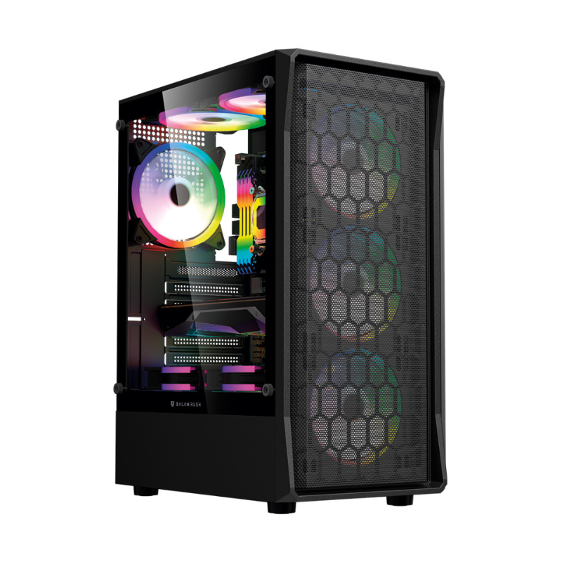 GABINETE BALAM MEDIA TORRE DRAGONFLY HEX GM560 INCLUYE VENTILADOR ARGB 3X120MM FRONTALES Y 1X 120MM TRASEROS 1X USB 3.0 2X USB 2.0 1X 3.5MM AUDIO CON MIC PANEL CRISTAL TEMPLADO Y MALLA NEGRO BR 943963