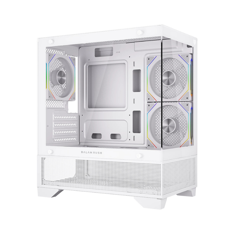 GABINETE GAMER BALAM RUSH MINI TORRE TANK PERFORM 3200 MAX MB M ATX GPU 340 MM 1 X USB 3.0 1 X USB 2.0 AUDIO 3 X VEN ARGB MOLEX PANELES DE CRISTAL LEGEND COLOR BLANCO 941662