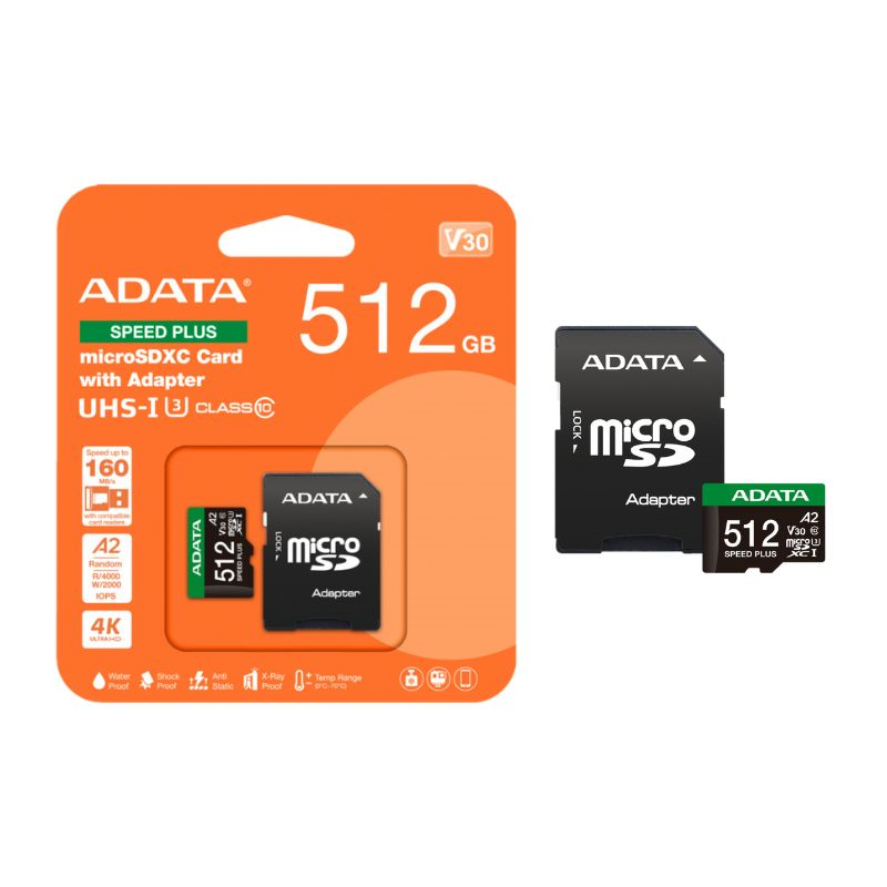 MEMORIA MICRO SD ADATA SPEED PLUS 512G SDXC UHS I U3 CL10 180MBS UD512GUI3V30A2SPRA1