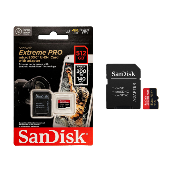 MEMORIA MICRO SD SANDISK EXTREME PRO 512GB CL10U3V30 A2 200MBS C ADAP SDSQXCD 512G GN6MA