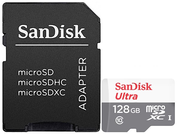 MEMORIA MICRO SD SANDISK ULTRA MICROSDHC 128GB CLASE 10 UHS I CON ADAPTADOR 100 MBS SDSQUNR 128G GN6TA