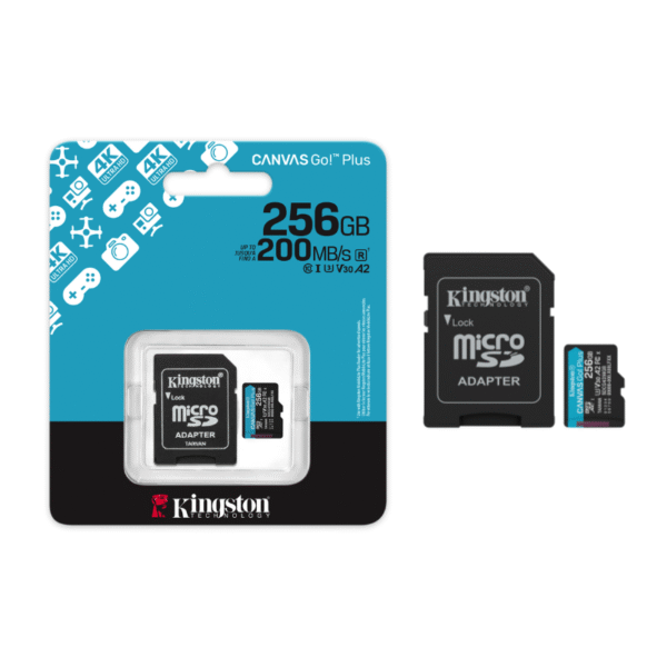 MEMORIA MICROSDXC KINGSTON 256GB CANVAS GO PLUS GEN4 A2 U3 V30 200MBS SDCG4 256GB