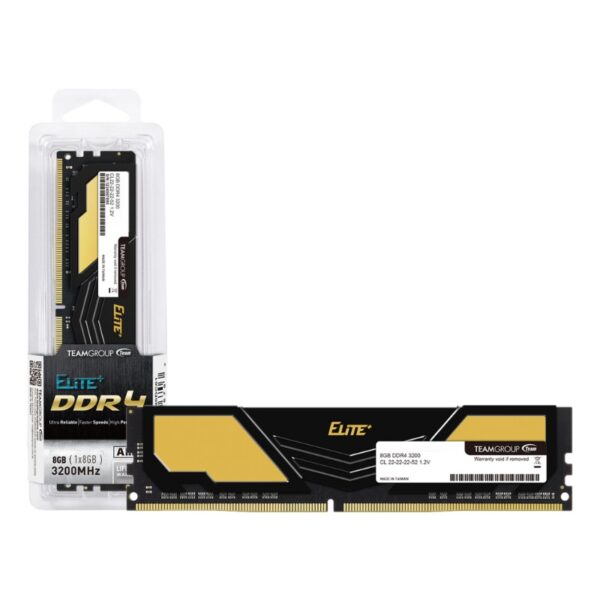 MEMORIA RAM DIMM TEAMGROUP ELITE PLUS 8GB DDR4 3200MHZ PC4 25600 1.2V NEGRO ORO TPD48G3200HC2201