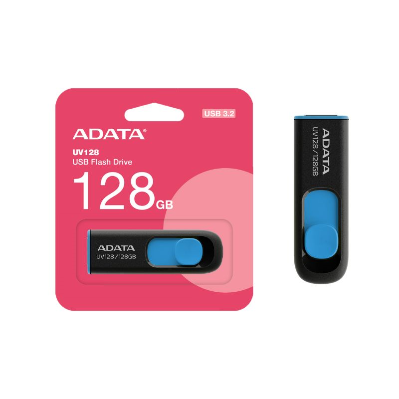 MEMORIA USB ADATA UV128 128GB 3.2 RETRACTIL NEGRO Y AZUL AUV128 128G RBE