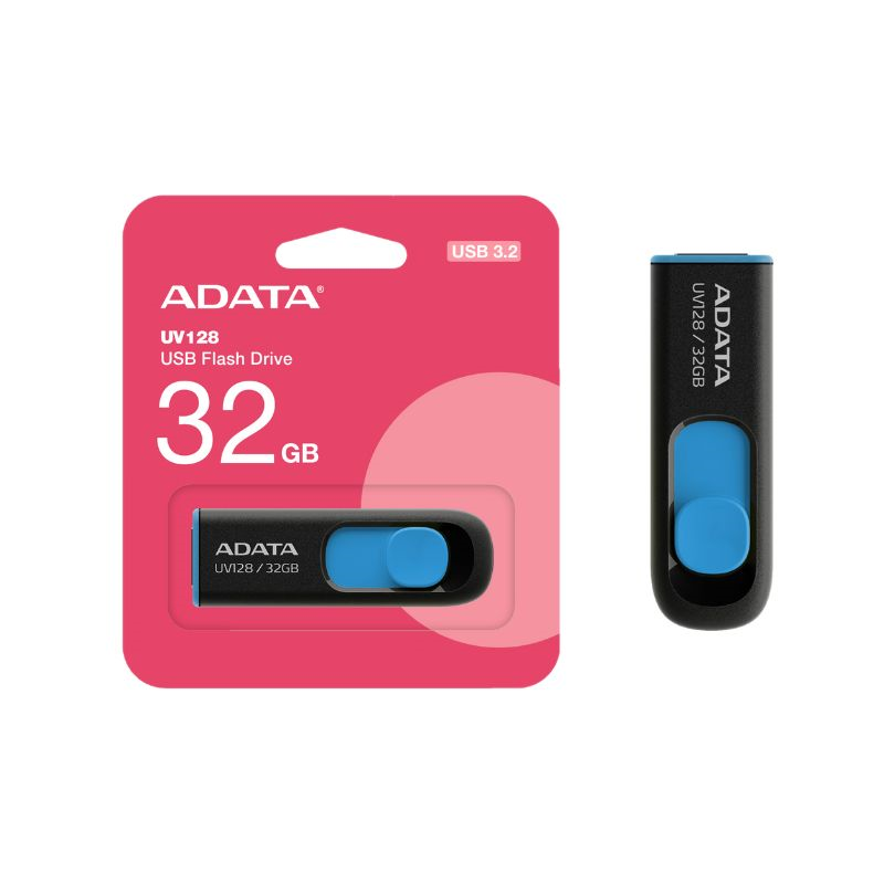 MEMORIA USB ADATA UV128 32GB 3.2 RETRACTIL NEGRO Y AZUL AUV128 32G RBE