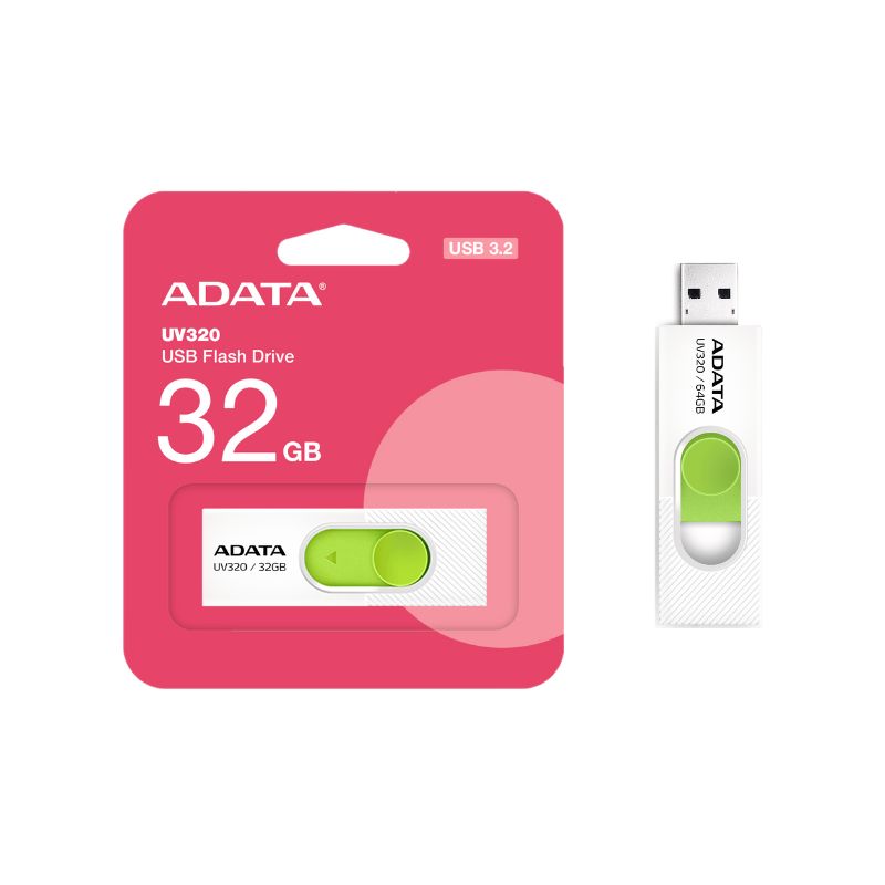 MEMORIA USB ADATA UV320 32GB 3.2 RETRACTIL BLANCO Y VERDE AUV320 32G RWHGN