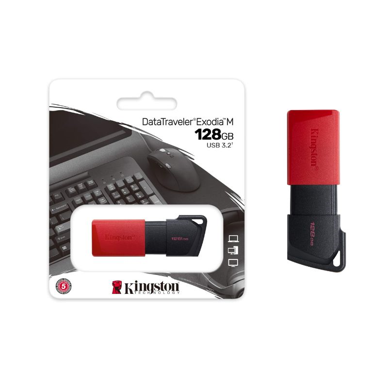 MEMORIA USB KINGSTON 128GB 3.2 GEN 1 DATA TRAVELER EXODIA M NEGRO Y ROJO DTXM 128GB