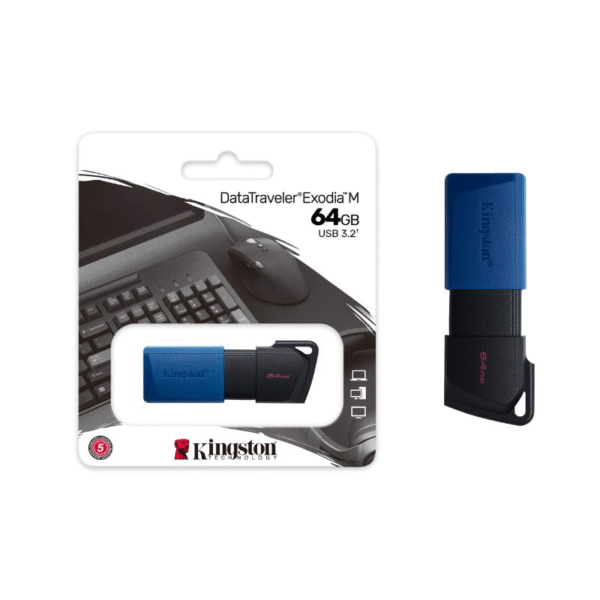 MEMORIA USB KINGSTON 64GB 3.2 GEN 1 DATA TRAVELER EXODIA M NEGRO Y AZUL DTXM 64GB