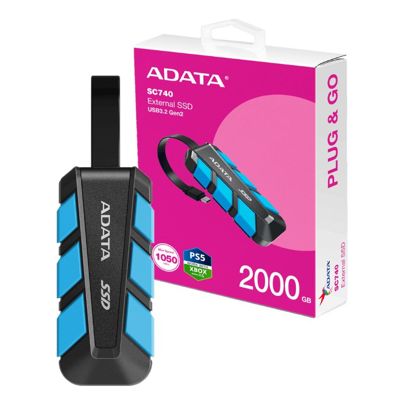 SSD EXTERNO ADATA SC740 2000GB USB 3.2 GEN2 TIPO C LECTURA 1050 MBS ESCRITURA 1000MBS AZUL SC7402000GCBU