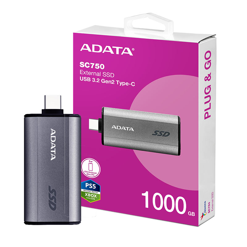 SSD EXTERNO ADATA SC750 1000GB USB 3.2 NEGRO TITANIO SC750 1000G CCBK
