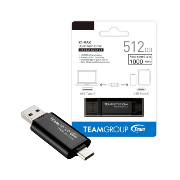 SSD EXTERNO TEAMGROUP X1 MAX DUAL DRIVE 512GB 3.2 1000MBs a 900MBs TX1MAX3512GB01