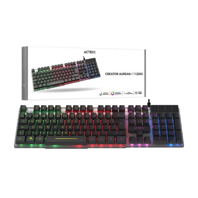 TECLADO ACTECK ALAMBRICO CREATOR AUREAN II TA220G ILUMINACION RAINBOWN NEGRO AC 939195